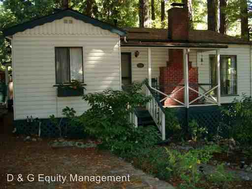 (RLNE2001919) Rustic charming hilltop private home with fenced in yard, walking distance to downtown Guerneville Propane range, refridge, washer, dryer, fireplace, propane fireplace. Knotty pine interior throughout home, french doors off living area leading into second bedroom, all tile counters in kitchen, brick and propane fireplaces in living area. Full bath with tub and shower combo. Exterior front covered porch stepping down to large woodsy, partial sunny fenced in yard, back patio with built in brick bbq and outdoor fireplace. Walking distance to downtown Guerneville Rental price includes: No utilities {Cat or Dog considered}