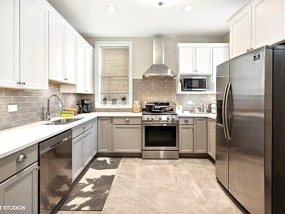 Prime Andersonville Location! Charming 3 Bedroom 2 Bath with office and huge living space. This lovely home features separate Living Room & Dining Room spaces. Full-size kitchen is all brand-new with white quartz counters and stainless steel appliances. Two (2) brand-new and modern bathrooms, one with a glass enclosed shower and one with a full size bath tub. Each of the (3) bedrooms can accommodate Queen Size beds There is a dedicated workspace/office Washer & dryer in unit! Attached private rear deck. Small grass yard w/ gas grill and a garage space available. 1435 W Foster Ave is approximately 0.5 miles (an 8-minute walk) from the Argyle Red Line station. The Bryn Mawr station is also nearby at about 0.6 miles or an 11-minute walk away. Aljack Mgmt: 773-588-1414
