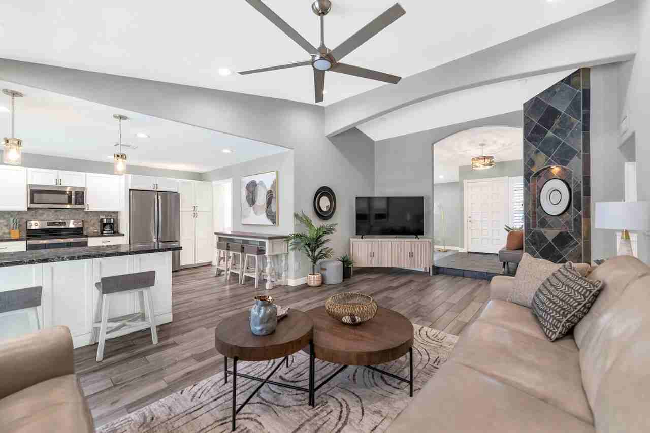 THIS IS A FURNISHED RENTAL THAT IS AVAILABLE SEASONALLY, LONG TERM PRICING, PLEASE CALL FOR BLENDED RATE!!! (Jan - Mar $5,995) (Apr, Oct - Dec $3,995) (May - Sep $3,495)!! Move-In Ready! Conveniently nestled near Fwy 60, shopping spots, & restaurants. Offering attractive curb appeal w/a 3 car-garage. Discover a charming living & dining room upon entrance, filled w/so much natural light, gorgeous wood-look flooring, vaulted ceilings, & backyard access. Gather around the fireplace on those chilly AZ nights! Well-kept eat-in kitchen is a cooker's delight, SS appliances, plenty of cabinet space, & bay window w/backyard views. Enjoy your gatherings in this serene backyard w/covered patio, putting green & refreshing blue pool. A must-see home you don't want to miss! *Minimum Lease Term of 1 Month* **Owner's closet located in garage is not available for tenant use. - Application Fee: $100 per applicant 18 years of age and older on the lease - Security Deposit to be equal to 1 months rent - Cleaning Deposit/Fee: $500 - Tenant must have the home professionally cleaned once per month during their stay at their expense ($120 per hour). MMG to provide contact information for the cleaning crew to be used - Monthly Administration Fee of $25 per month paid for by tenant - Cap on electric of $300 per month - Garage Spaces: 3 - Slab Parking Spaces: 3 - Pet Deposit/Fee: $500 for 1st pet; $250 for each additional pet Monthly Cleaning Breakdown by Square Footage: • 1499 sq ft or less: $120 (1 hour) • 1500 – 2499 sq ft: $180 (1.5 hours) • 2500 – 3999 sq ft: $240 (2 hours) • 4000 – 5999 sq ft: $300 (2.5 hours) • 6000 sq ft or greater: $360 (3 hours)