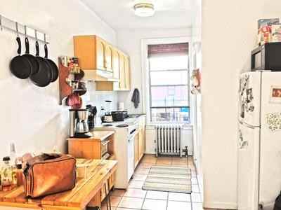 Sunlit Interiors, Centrally Located, Beautifully Restored Incredible corner unit with wall paneling and windows throughout ushering in gorgeous sunlight steps from the Greenpoint waterfront. Separate kitchen, spacious common area to entertain, equal-sized bedrooms with preserved original ceiling tiles. Shared roof deck. Call//Text Kevin P 219-682-6565 Call/Text Kevin @ 219-682-6565