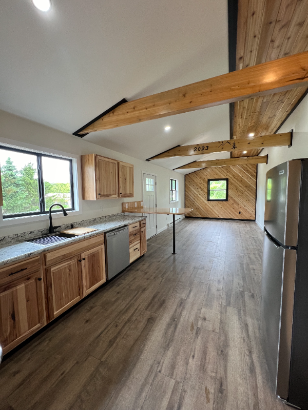 Property Id: 1494496 One year old cozy 2 bedroom house. You will fall in love with the natural wood interior and big yard! You will love standing at your sink looking out at the beautiful green mountains and horses across the street. You may even see deer feeding off one of the many apple trees on the property while sitting on your patio! You are 12 minutes from Morrisville (15 mins to Copley Hospital), 23 minutes to Stowe, 30 minutes to Smugglers Notch, 34 minutes to Jay Peak, and 18 minutes to the Green River Reservoir. This house comes with washer, dryer, dish washer, fridge/freezer, oven stovetop, microwave, baseboard heating, and both rooms have fans built into the lights with adjustable brightness and color. There is also strip led lights on each of the beams. Snow removal and lawn care are included. FIRM ON NO PETS! For any questions or to book a showing, please call Andy at 802-585-4023. To fill out an application, you will need to send us your full name and phone number.
