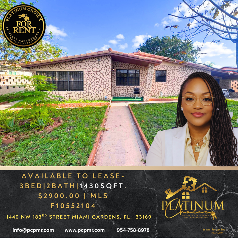 3-bedroom apartments at 1440 Nw 183rd St cost about 6% less than the average rent price for 3-bedroom apartments in Miami Gardens.