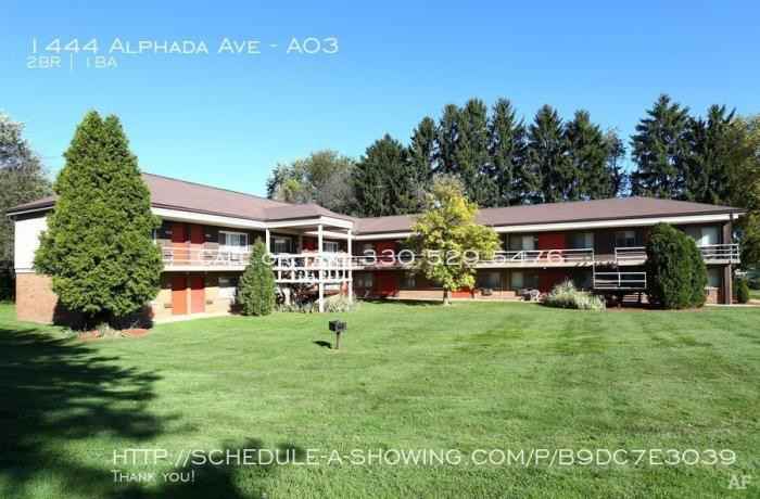 2-bedroom apartments at 1444 Alphada Place cost about 40% less than the average rent price for 2-bedroom apartments in Akron.