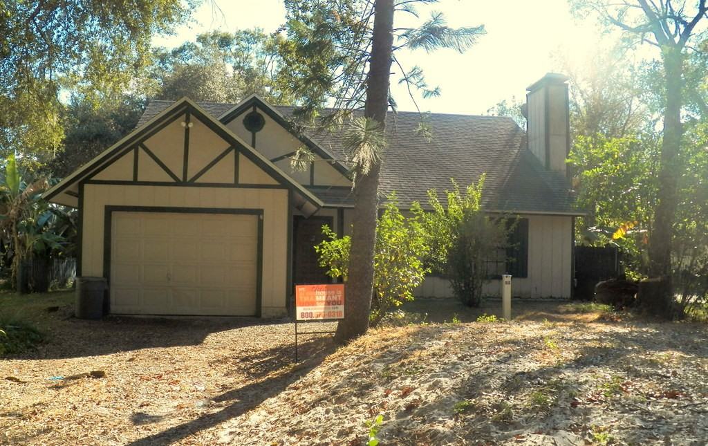 This Beautiful 3 bedroom 2 bathroom home is large and very unique! Large amount of land surrounding the home going to the back yard with in-ground pool area. Walking into the property you have tiled flooring running from the living to the kitchen area. Living room has vast open vaulted ceilings, fireplace on the far right wall and the stair way is lined with wood decorative railings leading to the master bedroom. Kitchen is stocked with a breakfast nook, bar, and kitchen area, with all major appliances including refrigerator, stove and dishwasher. Master bedroom is spacious with a walk in closet and full bathroom with tiled flooring, vanity sink and standing shower. Two additional bedrooms, second full bathroom, utility room, two car garage and huge fenced in back yard. Call today!