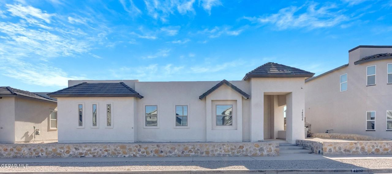 Property Status: Active Discover this stunning and modern 5-bedroom home that beautifully blends style and functionality! As you enter, you're greeted by a spacious courtyard and an inviting foyer that set the tone for this remarkable residence. The open-concept design showcases soaring high ceilings, a generous living area adorned with elegant beam details and a cozy fireplace, seamlessly flowing into a sophisticated dining space that's perfect for entertaining. The chef's kitchen is a true masterpiece, featuring a long island, top-of-the-line stainless steel appliances, exquisite quartz countertops, and a breathtaking backsplash that adds a touch of luxury. The primary bedroom is a serene retreat, complete with an en-suite bathroom that boasts a lavish walk-in double-door shower, dual sinks, a separate soaking tub, and a spacious walk-in closet. Accommodating your family's needs, this home also offers four additional bedrooms and two beautifully appointed bathrooms, all nestled within over 3,000 square feet of ample living space. Natural light dances throughout the home, highlighting the elegant ceramic tile in the main areas and soft carpet in the bedrooms. Step outside to your backyard oasis, ideal for outdoor gatherings, featuring an extended covered patio, a charming pergola, and low-maintenance artificial turf. Conveniently located near top-rated schools, lush parks, shopping, and vibrant entertainment options, this home is just a short stroll from Pebble Hills High School. With Fort Bliss less than 30 minutes away, this is the perfect blend of comfort and accessibility. Don't miss your chance to make this dream home your own! Office Phone: (915) 309-1419 Copyright © 2026 Greater El Paso Association of Realtors. All rights reserved. All information provided by the listing agent/broker is deemed reliable but is not guaranteed and should be independently verified.