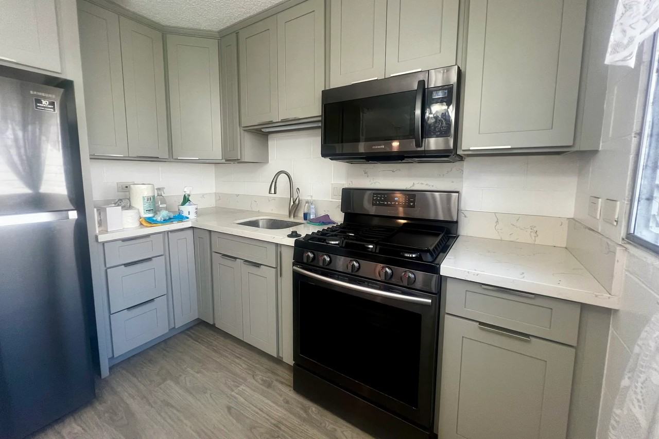 This updated Kalihi apartment is a 2 bedroom/1 bathroom ground floor unit, featuring new flooring, cabinets and countertops, window AC units (1 in each bedroom), and 1 parking space. Both bedrooms include a closet, in addition to a linen closet in the hallway. The bathroom includes standing shower, single sink vanity, and toilet, as well as floating cabinet above toilet for extra storage space. The kitchen includes range, microwave, and full size fridge/freezer. This community is located in the center of Kalihi-Palama with easy access to tons of eateries, restaurants, grocery stores, and other shops. Communal laundry available onsite.1 year lease preferred. Basic cable & internet is included in rent, as well as water/hot water. Tenant is responsible for electricity. Strict no smoking policy. Pets negotiable. Application fee is $34.95/person to cover credit/background/income check. Novation RealtyRB-22567