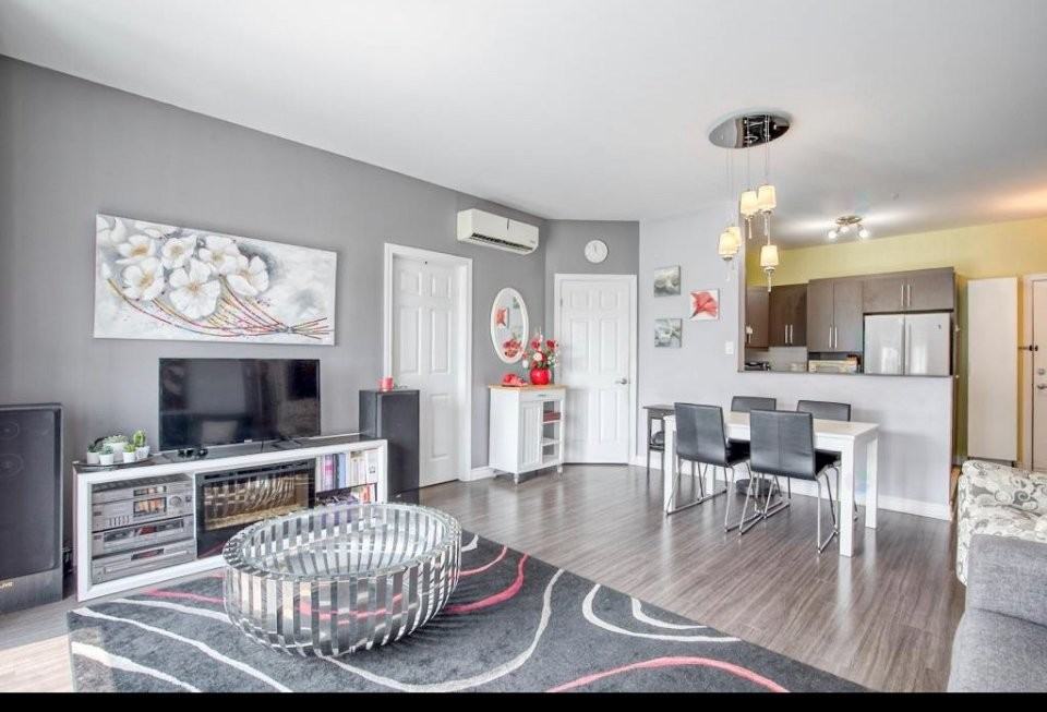 Condo lumineux au dernier étage avec stationnement intérieur, situé dans un emplacement de choix à Longueuil!Situé au 4e et dernier étage d'un immeuble bien entretenu avec ascenseur et terrasse commune sur le toit, ce condo offre un cadre de vie à la fois confortable, fonctionnel et superbement localisé, à proximité de tous les services : commerces à grande surface, hôpital Pierre-Boucher, écoles, CPE, espaces verts et le populaire Parc Michel-Chartrand, poumons de la ville de Longueuil. Ce condo propose une aire de vie ouverte baignée de lumière, avec un salon agrémenté de grandes fenêtres et d'une porte patio menant au balcon privé, un coin repas convivial et une cuisine offrant beaucoup de rangement et un bon espace de travail. On y retrouve deux chambres à coucher fermées dont une chambre principale avec un très grand walk-in ainsi qu'un coin boudoir parfait pour aménager un bureau à domicile ou un coin lecture confortable. La salle de bains complète propose une douche indépendante, un bain ainsi qu'un meuble lavabo avec vaste rangement. Une salle de lavage fermée avec rangement et aspirateur central ajoute à la fonctionnalité de l'espace. Le balcon privé, accessible par le salon, permet d'y créer un agréable coin détente avec vue dégagée sur les environs. Le condo comprend également un stationnement intérieur à louer en sus. Bienvenue à l'unité 406. Un parfait équilibre entre confort, luminosité et localisation stratégique!