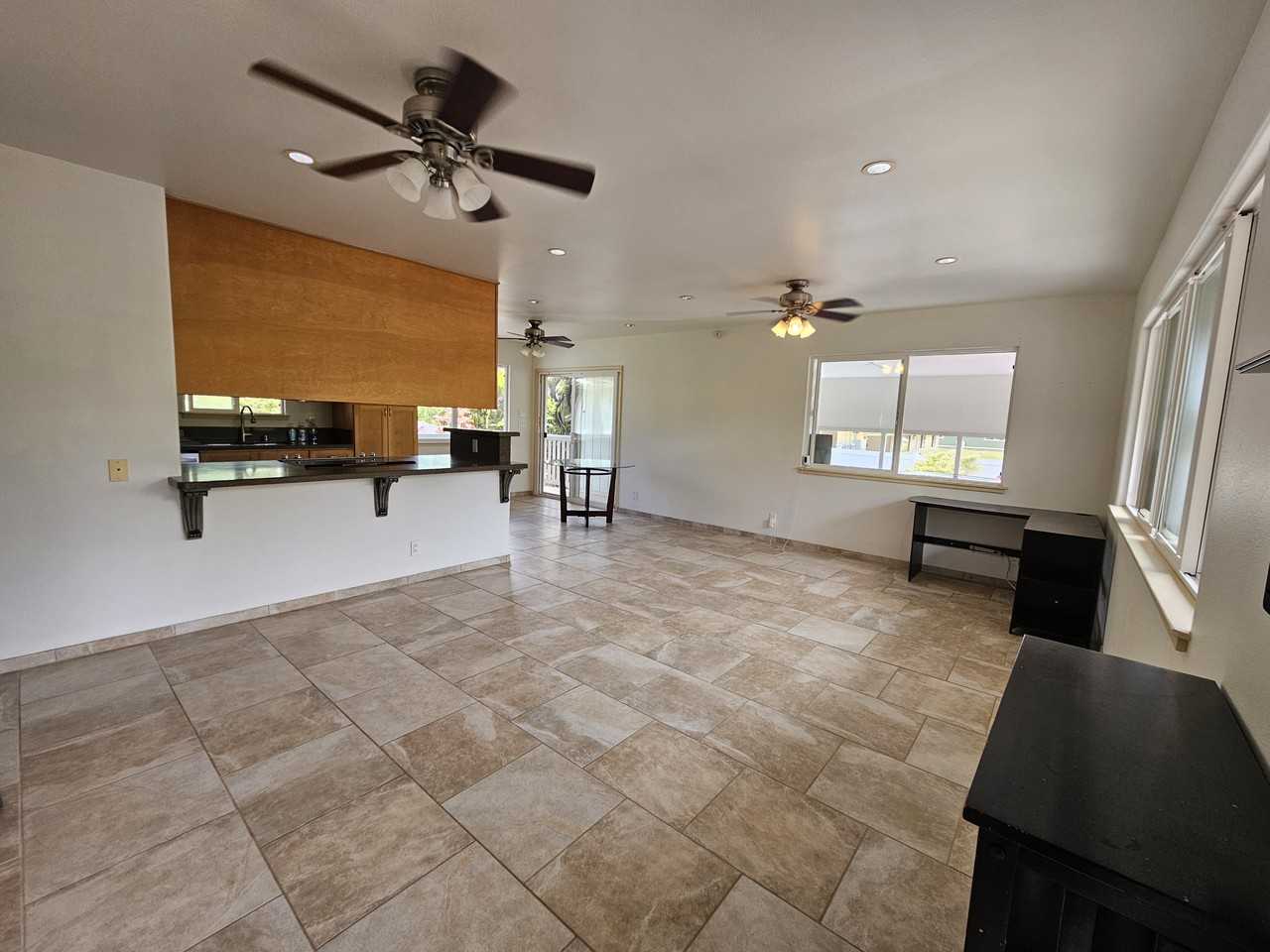 Lovely 4 bedroom 3 bath home in Hawaiian Paradise Park Subdivision. The property is fenced with a gated entrance. The 4th bedroom has a separate entrance with an ensuite bathroom and is located off of the back lanai which is accessible from the main bedroom and dining area. This home has granite countertops and tiled flooring throughout. Appliances included: stainless steel ice box, stove, dishwasher, garbage disposal UV filtration system, and solar water heater. All furniture in photos is included with the house. No pets allowed. Tenants to pay for utilities.