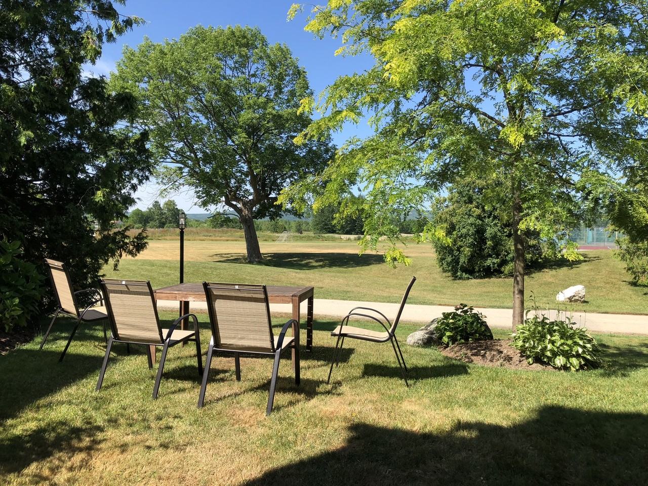 Beautiful open-concept end unit in the sought-after Living Stone Resort Area. Backing on to Cranberry Golf Course & Tennis Courts with direct views of Blue Mountain from the living room and rear patio. Cycle paths are available from the back yard, and the lake is only 5 minutes away. Walk, bike, drive or bus to the Town of Collingwood or Blue Mountain Village. The townhouse is within a small condo community providing all exterior and yard maintenance. Parking and guest parking is available.