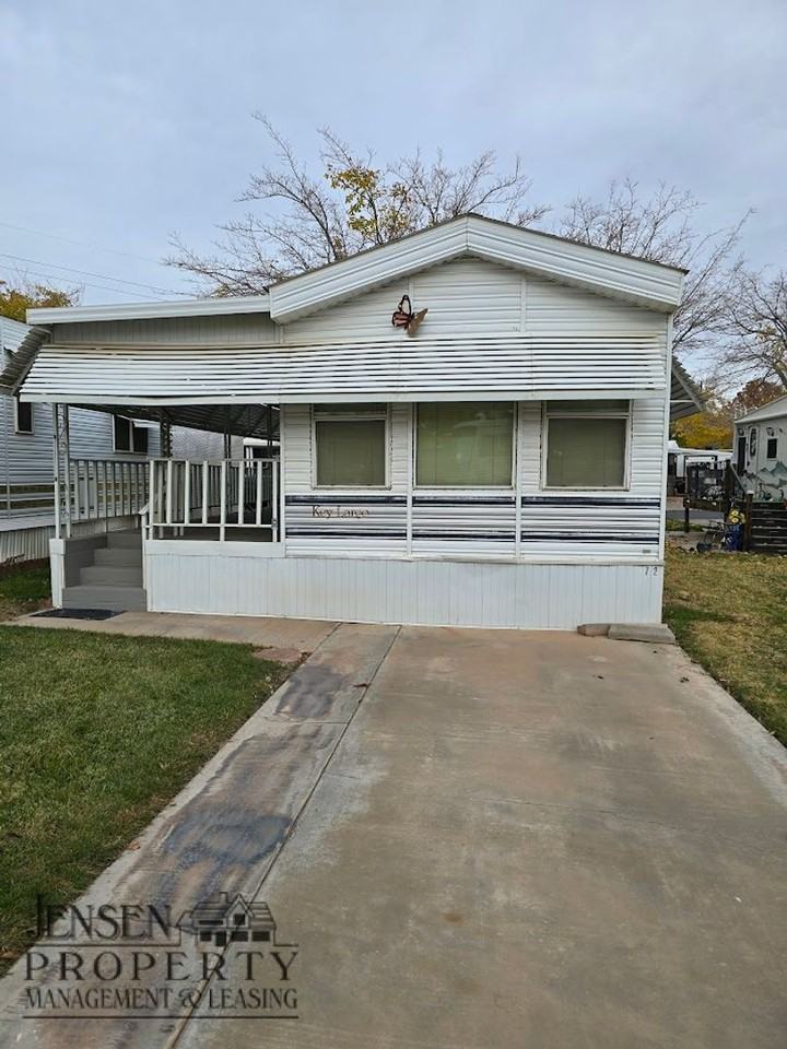1 Bedroom 1 Bath. Very Nice recently remodeled park model. Large Lot with 2 parking spaces one covered. Covered patio with storage unit. The Palms is a 55 + community, with a community pool, spa, work out room, laundry room. Contact Jensen Property Management to set up a showing today! 435-628-1678, email **** No Pets. 12 Month Lease. +$100 Lease Initiation Fee