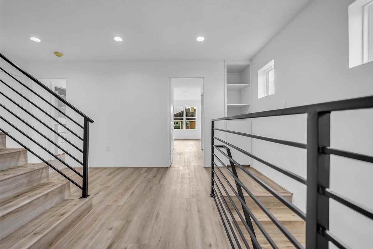 Modern three-story new construction townhome for lease in Houston, offering 4 bedrooms and 3.5 bathrooms with a highly functional layout and abundant custom storage throughout. The first floor provides generous living and entertaining space with an open, well-designed flow and a convenient half bath. The second floor features a primary bedroom plus two secondary bedrooms, a separate laundry room, and well-proportioned spaces designed for everyday living. The third floor functions as a private suite with an oversized bedroom, private bathroom, custom walk-in closet, and sliding doors leading to a small terrace, creating a flexible retreat ideal for privacy, work, or guests. Move-in ready and thoughtfully finished, this home includes a two-car garage for private parking and easy access. Centrally located with a short drive to major highways, dining, shopping, and key Houston destinations. Strong value, efficient design, and immediate availability.