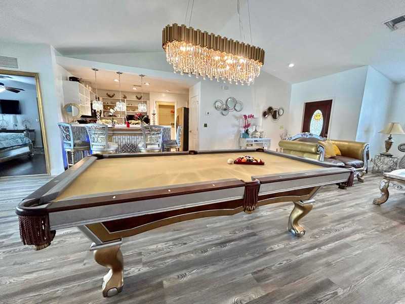 Property Id: 1259065 Beautiful vacation home now available for weekly/monthly rental. It has a unique pool table in the living room for your entertaining guests, an open bar, and tvs in every room. Everything's already furnished. 3B+Den/2Bath home on almost a half acre with a privacy fence. This house is a corner lot. Tropical fruit trees across the whole property. Play area for the kids. 2000 sq ft of living space affords room for everyone and more! In the backyard, there's a big gazebo area with a gas barbecue. 2 car garage & a big driveway to hold a lot of cars. Washer & dryer included. Water & Electric included. Brand new A/C.
