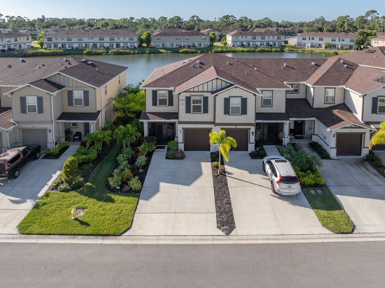 RENTAL!!! Experience the perfect blend of modern style and peaceful living with this beautiful lakefront townhome in the gated community of Bayshore Commons. Built in 2023, this 3-bedroom, 2.5-bath home offers a bright, inviting atmosphere and a layout designed for both comfort and convenience. The stunning kitchen features crisp white cabinetry, granite countertops, pendant-lit breakfast bar, stainless steel appliances, and a pantry—opening seamlessly to the spacious great room, ideal for everyday living and entertaining. Upstairs, you'll find a generous master suite with an oversized walk-in closet and a beautifully appointed master bath featuring double sinks and walk in shower. Two comfortable guest bedrooms share a stylish full bath, while the conveniently located second-floor laundry makes chores a breeze. A powder bath is thoughtfully placed on the first floor for guests. Step out to your private screened lanai, complete with vinyl windows and its own air-conditioning system—creating a tranquil year-round retreat to relax and enjoy the peaceful lake views. For added peace of mind, the home also includes accordion storm shutters. Bayshore Commons is a friendly gated community offering a clubhouse and refreshing community pool. The low HOA fee covers water, sewer, and landscaping, making maintenance effortless. Ideally located with quick access to I-75 and downtown Fort Myers, this home delivers serene lakefront living with everyday convenience. Come discover the tranquility, comfort, and ease that await you here! Rental... Experience the perfect blend of modern style and peaceful living with this beautiful lakefront townhome in the gated community of Bayshore Commons. Built in 2023, this 3-bedroom, 2.5-bath home offers a bright, inviting atmosphere and a layout designed for both comfort and convenience. The stunning kitchen features crisp white cabinetry, granite countertops, pendant-lit breakfast bar, stainless steel appliances, and a pantry—opening seamlessly to the spacious great room, ideal for everyday living and entertaining. Upstairs, you'll find a generous master suite with an oversized walk-in closet and a beautifully appointed master bath featuring double sinks and walk in shower. Two comfortable guest bedrooms share a stylish full bath, while the conveniently located second-floor laundry makes chores a breeze. A powder bath is thoughtfully placed on the first floor for guests. Step out to your private screened lanai, complete with vinyl windows and its own air-conditioning system—creating a tranquil year-round retreat to relax and enjoy the peaceful lake views. For added peace of mind, the home also includes accordion storm shutters. Bayshore Commons is a friendly gated community offering a clubhouse and refreshing community pool. The low HOA fee covers water, sewer, and landscaping, making maintenance effortless. Ideally located with quick access to I-75 and downtown Fort Myers, this home delivers serene lakefront living with everyday convenience. Come discover the tranquility, comfort, and ease that await you here!