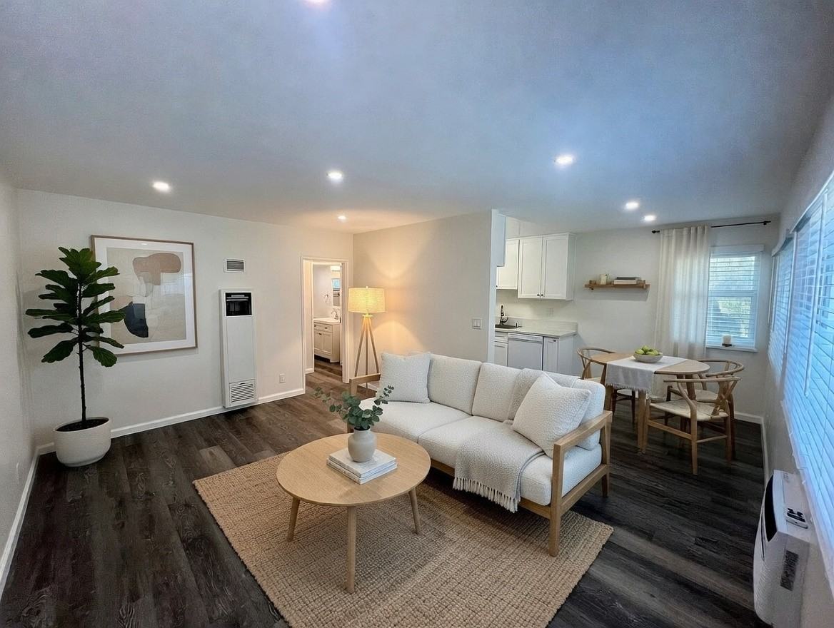 Step into this freshly updated 1-bedroom retreat featuring brand-new vinyl plank flooring, bright recessed lighting, and a modern kitchen with white shaker cabinets, quartz-style countertops, and a gas stove. The open-concept living and dining area is filled with natural light and flows effortlessly into the kitchen, making the space feel bigger than you'd expect. The generously sized bedroom comes with a large sliding-door closet and its own AC unit to keep you comfortable year-round. The updated bathroom features a new vanity, framed mirror, and tub/shower combo with a glass sliding door. Enjoy the convenience of on-site laundry with app-based payment, plus a charming neighborhood with mature landscaping and tree-lined sidewalks. Located on Burbank Blvd with easy access to shopping, dining, and transit. Don't wait — this one won't last. Schedule your tour today! Note: Select photos are virtually staged for illustrative purposes. Unit is delivered unfurnished.