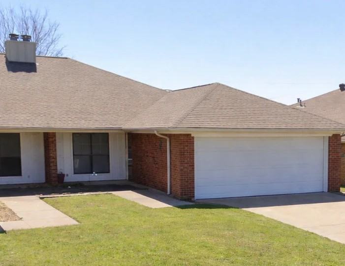 Property Id: 2460293 Welcome to this newly updated 3 bedroom 2 bathroom 2 car garage duplex perfect for comfortable every day living. Spacious bedrooms with plenty of closet storage for everyone. Master bedroom has a huge walk in closet. Living Room has high vaulted ceilings and fireplace. Tile throughout entire home for easy clean up. Conveniently located near Gerard Elementary and Smith middle school. Minutes away from Chisolm Trail Parkway. Pets are allowed small dog or cat for 25 dollars extra each month. Limit one pet. Every adult over the age of 18 must fill out application. Must show identification, proof of employment (paycheck stubs), rental history. You are responsible for all utilities, pest control, and lawn maintenance. You must furnish your washer, dryer, and refrigerator.