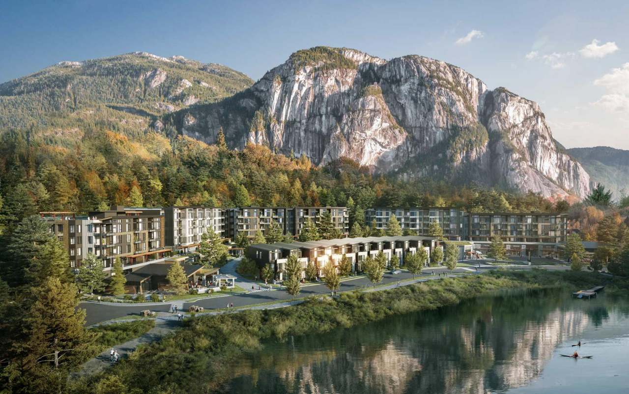 Brand New 2 Bedroom, 2 Bathroom Condo in the Redbridge development . This suite features an enormous private 700 sq. ft. outdoor living space, and has never been lived in. Includes two bedrooms with walk-in closets; one has private ensuite, two full bathrooms with granite countertops, in-suite laundry, plenty of storage space, a nook, a den, high-end appliances, quartz island & countertops and a large contemporary kitchen. Patio is plumbed for a gas BBQ. One underground parking space, a large storage locker and concierge service are included. Building Amenities: • 20,000+SF of amenities: • Fitness centre, fully-equipped yoga room, and infrared light room • Full size sauna with hot & cold plunge pools • Coworking and residents' lounges and meeting rooms • Kayak launch and waterfront access • Secure bike storage and gear maintenance room with lockers • Landscaped outdoor spaces and community gardens • Guest suites for visitors • Outdoor kitchen with grilling area. Location Highlights: • Located on the Mamquam Blind Channel with quick access to nature trails. Cycle from home to trails. • Minutes to Downtown Squamish shops, restaurants, and services • Close to world-class hiking, climbing, biking, and paddling spots • Easy access to the Sea-to-Sky Highway for commuting to Vancouver or Whistler • Scenic, quiet, and well-connected area Rental terms: 1-year lease preferred. Hydro and internet are not included. Small pet allowed (subject to landlords approval)