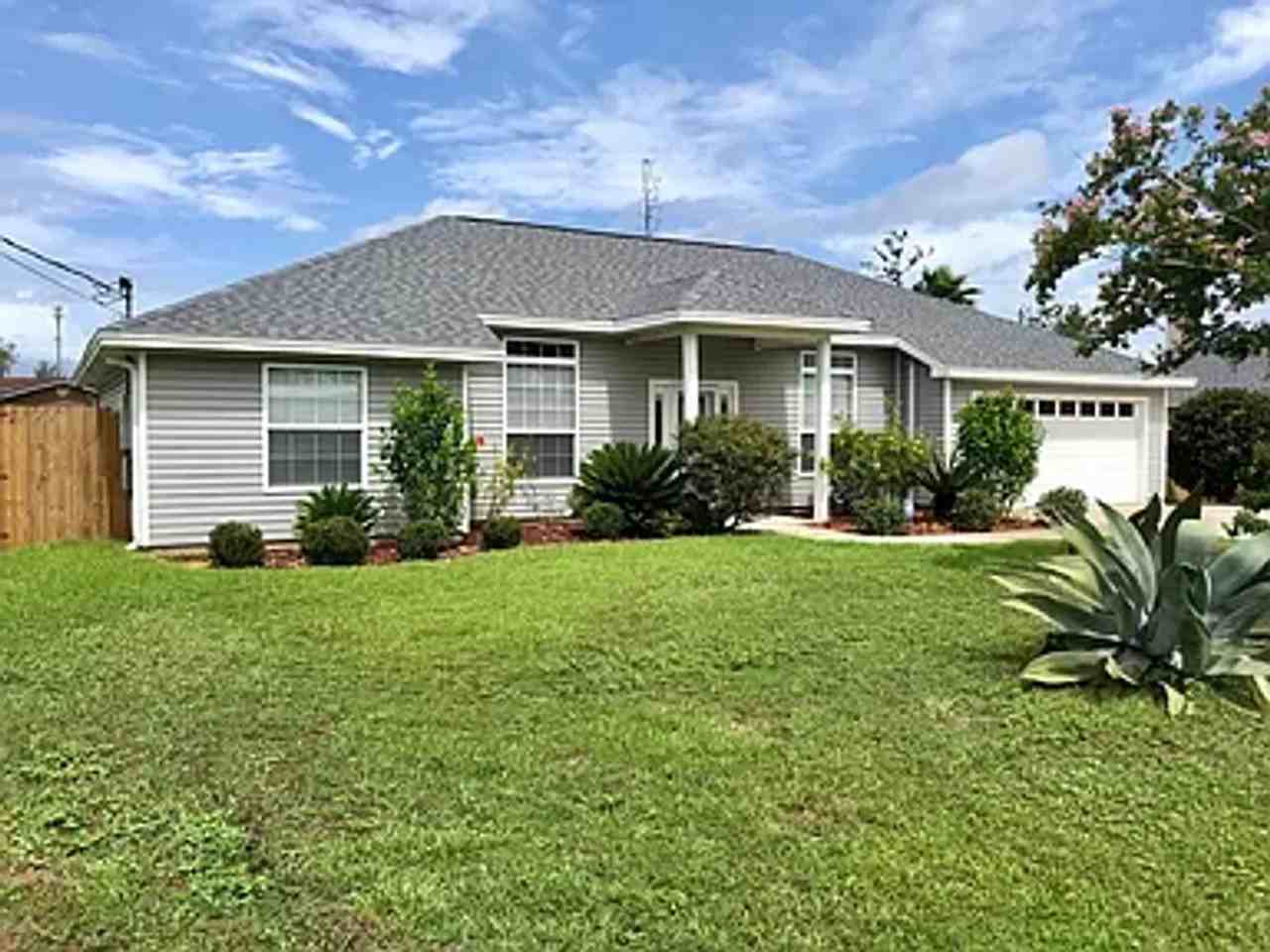 *** MOVE IN SPECIAL *** Half OFF first month 4 bedroom home on a large lot in Lynn Haven. The interior of this light and bright home was just painted throughout. Home offers a very livable open floor plan with a master bedroom on one side of the house and three additional bedrooms on the other. All bedrooms have laminate flooring, ceiling fans and plenty of closet space. The main living areas feature 9 ft. ceilings, crown molding, and tile floors. The kitchen has granite counter tops, custom wood cabinets, breakfast bar, breakfast nook, and large pantry. The spacious master bath features a large walk-in closet, garden tub, separate shower, his/hers vanities, and linen closet. Home has a separate dining room with large windows and a huge living room that overlooks the spacious backyard. The backyard is fully fenced and includes a storage building. The home is centrally located in Lynn Haven near shopping, restaurants, schools, and just around the corner from Cain Griffin Park.