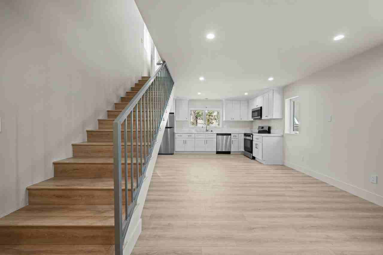 This newly renovated 2-bedroom, 2-bath ADU offers a bright open-concept layout with clean contemporary finishes throughout. The updated kitchen features white cabinetry, stainless steel appliances, and ample counter space, flowing seamlessly into the living area. The bathroom is thoughtfully designed with a sleek walk-in shower and modern fixtures. Light wood flooring, recessed lighting, and a private feel make this unit both stylish and functional—ideal for comfortable, modern living.
