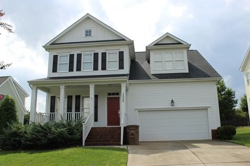 3BR, 2.5BA house in desirable Heritage Wake Forest with bonus room! Custom eat-in kitchen with Corian countertops, breakfast bar, and pantry. Appliances include a stove, refrigerator, dishwasher, disposal & built-in microwave. The living room has a gas fireplace. Separate formal dining room. Hardwood floors in living areas. Carpet upstairs and in downstairs master bedroom. Screened-in porch. Backyard includes a playset. Two-car garage. Washer/dryer connections. Two walk-in unfinished storage areas. Alarm system can be activated at the tenant's expense. Use of community pool, tennis, and golf course available at tenant's expense. No smoking please. Central A/C and heat (gas). MATURE PETS WILL BE CONSIDERED. Directions: I-440 N towards Wake Forest. Merge onto Capital Blvd. towards Wake Forest/Louisburg via exit 11. Turn right onto S. Main St/US-1 Alt. Turn right onto Rogers Rd. Turn left onto South Franklin St. Turn right onto Meadow Flowers Ave. Turn left onto Heritage Garden St. House is on left.