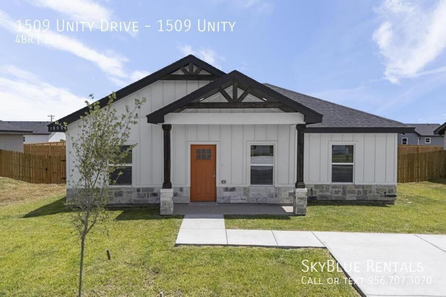 ---- SCHEDULE A SHOWING ONLINE AT: http showmojo com lz 1bc14850e2 ---- Welcome to this charming Home. Move in PROMO: move in with deposit ONLY* *APPLY NOW* Schedule a Showing or Apply online here --> https tinyurl com 1509Unity As you approach, you're greeted by a neatly landscaped front yard and a farm house facade. Enjoy modern open space design and HUGE Backyard. Kitchen with custom cabinets, appliances, Quartz countertops, Built-in closets, Ceiling fans and miniblinds. This home boasts four bedrooms, three baths offering flexibility for accommodating guests. Laundry room with hookups for full size washer and dryer. Move in PROMO: move in with security deposit ONLY, get free rent the rest of this month. Appliances & Features: Appliances: Refrigerator, stove, microwave Add ON: Washer and Dryer $50/month Pet Policy: PET DEPOSIT: 20 lbs. or less $100pet, 20+lbs $150/pet. 1 time PET FEE: $65/Pet No Utilities Included Location: https maps app goo gl dNrhjZt9nEH9Lnpj7 Lease Term: 6 to 18 months lease. Call/Text (956)436-5193 for more information Year Built: 2024 Rental Assistance: Yes Fifty-five plus: No Multiplex: No