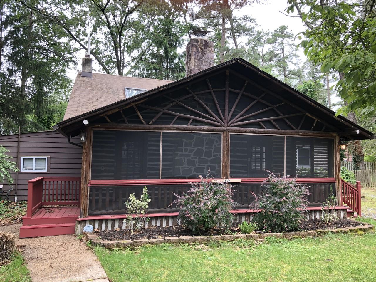 You'll love this original Medford Lakes log cabin which is loaded with charm. The welcoming screened front porch is the perfect place to relax and unwind. French doors on either side of the fireplace open to the Great room. Once inside a floor to ceiling stone fireplace is the focal point of this Great room which features hardwood floors and a cathedral ceiling. There is an updated kitchen with a center island and a large family room with cathedral ceilings and two skylights. Plenty of room for entertaining! The first level also features two full baths and two bedrooms. An open wood staircase leads to the second floor balcony which overlooks the Great room. There are two additional spacious bedrooms on the second floor. The lot is quite large for Medford Lakes and includes plenty of driveway parking, a fenced back yard, two patios, a wood deck and a storage shed. The colony club bond is in good standing. Members of the Medford Lakes Colony club can enjoy a variety of lakes for swimming and canoeing with white sandy beaches. So many activities including playgrounds, ball fields, tennis courts, basketball courts, a youth summer camp and a recently built craft pavilion which replaced the log cabin originally built in 1931 when Medford Lakes was a summer resort community. You can walk or ride your bicycle to a wide variety of restaurants and shops. You may even want to consider joining the Medford Lakes Country Club which is within walking distance and offers special events throughout the year for the entire family. Medford Lakes offers a life style you will surely enjoy. An extra bonus- Must be non-smoking, and have strong credit, references and job history