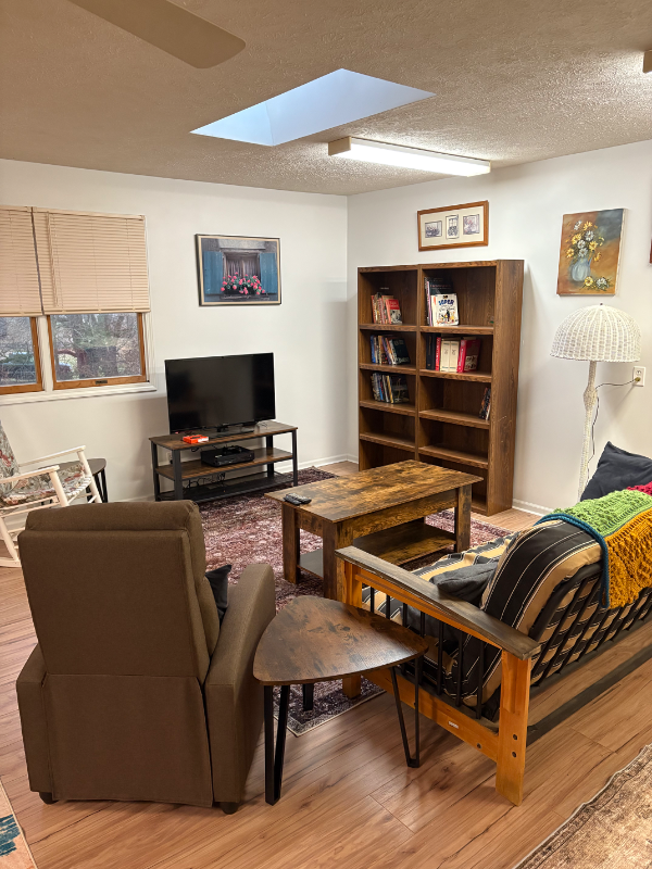 Property Id: 1805962 Open studio apartment with two skylights. New floor and paint. Full sized refrigerator and kitchenette. Queen size bed. Good/fair signal Wi-Fi with Amazonfire TVstick and smart TV. Second floor walk up above two car garage (one space for renters car, plenty outdoor parking). Seasonal in ground pool (20x40) privileges. Private bath shower (no bathtub). Xbox One game console.