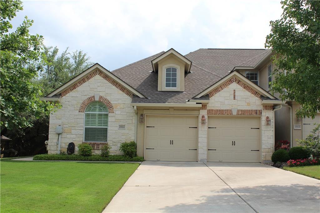 1 Hour Notice Please : Beautiful one story meticulous end unit in the heart of Lakeway. Majestic oak trees, huge yard , private, high end finish out, hand scraped wood floors, ceramic tile and carpet in bedrooms only. 12' ceilings, archways, walls of windows, faux wood blinds and plantation shutters, gourmet kitchen, granite counters, 42" cabinets, black and stainless appliances, oil rubbed bronze fixtures, ceiling fans , outdoor patio overlooks landscaped backyard . Community pool, gym and so much more.