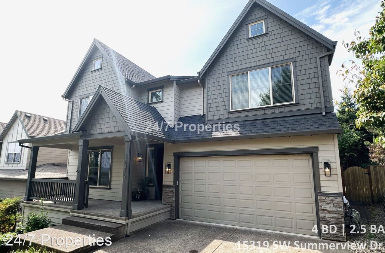 Large 4 BD I 2.5 BA with Mt. Hood View! - King City - This well-maintained Craftsman style 4BD home is fully equipped! A large office or bedroom with double doors sits just off the entryway. Engineered hardwood floors carry through 2 lovely dining areas and border in the carpeted living room with gas fireplace. The well laid out kitchen features an island, quartz counters, antiqued white cabinetry, pantry, s/s appliances, gas range and separate bar with a separate wine cooler. The spacious primary bedroom greets you with a gorgeous view of Mt. Hood. It features an ensuite closet & bath with a fully tiled shower, dual sinks & soaking tub. Two oversized standard bedrooms, full bath, laundry room and additional large theater room fully wired with surround sound complete the comfort of this home to offer space for everything you need. The well-manicured yard features great views of Mt. Hood, features a covered patio & large front porch, outdoor stone patio, and a covered entertainment area with mounted TV. The home also features a built-in surround sound system throughout, Smart thermostat, Smart LEDs, solar panels that basically cover your electric bill, and a 220v EV charger in the garage. Close-by grocers such as locally owned Trader Joe's and Safeway are just across 99-E. King City Public Golf Course and quick access to the Tualatin River are nearby as well. You can easily head any direction you are looking to go as this home is conveniently located between Beef Bend Rd, 99-E and SW Durham Rd. Tigard-Tualatin School District Non-smoking property All applicants age 18 and over will require screening and a $55 screening fee. Security Deposit - $3,895.00 + Depending on screening results Pets ok, cat or small dog - $500.00 Pet Deposit, $25.00 Monthly Pet Rent per pet Landscaping is responsibility of tenant This is an HOA property Washer/Dryer Hookups All utilities are responsibility of tenant Garage/Driveway Parking * NOTE: If you are viewing this listing on a third party website, please visit WWW 247PROP COM to ensure accuracy of the listing description and availability.