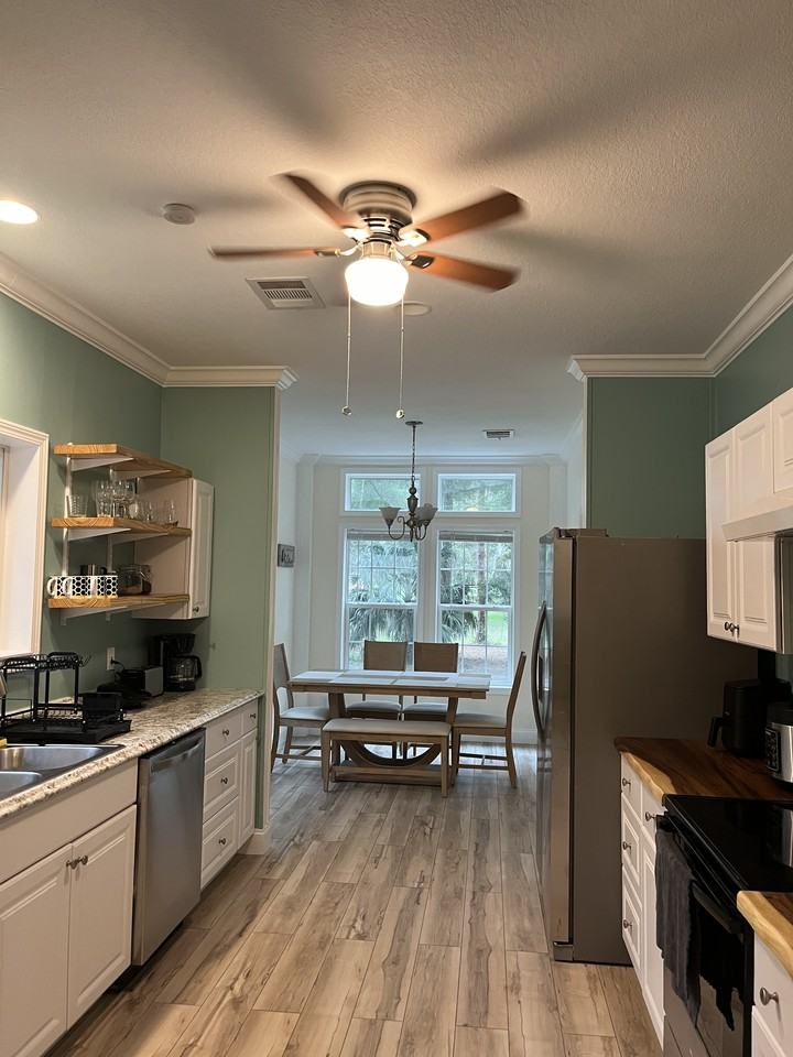 Discover your next home in this stunning, fully remodeled 2-bedroom, 2.5-bathroom house. Each bedroom has its own bathroom, plus guests have a half bathroom available. Perfectly designed with an open concept layout, this spacious and comfortable home comes fully furnished with brand-new appliances. Enjoy the tranquility of a beautiful, quiet neighborhood surrounded by lush trees and greenery. The large yard offers plenty of space for outdoor activities, making it an ideal retreat for those who appreciate nature and peace.