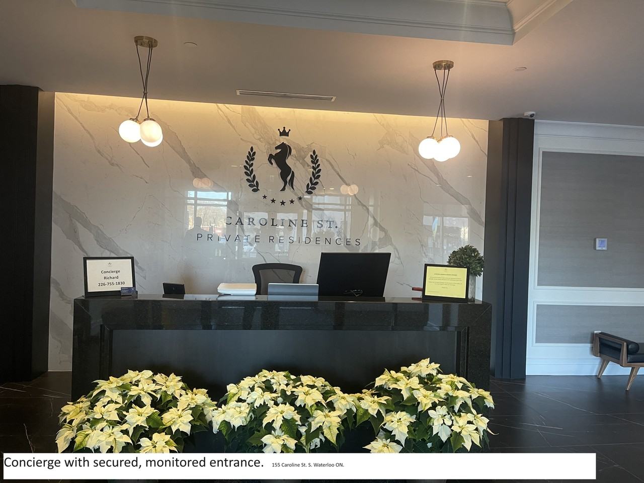 Location, location, location. This is a quiet high end professional luxury condo. Caroline Street Private Residences! This luxurious high rise is centrally located in the highly desirable Bauer District. Enjoy an active lifestyle with tech companies up the street. Quick access to bus stops, LRT stops, and only minutes to the expressway. Steps from shopping, grocery, entertainment, parks, trails, and schools. This is the best location in Waterloo for it all. The building has a concierge. Fully equipped amazing gym. Two hotel rooms for your guests to stay. A fully equipped party room with kitchen and pool table. Several BBQs on the large 4th floor terrace with seating and putting green. Also, a multipurpose room with books, games, and streaming TV. 1 parking is included. (Electric vehicle charging parking spot may be available for an extra fee). A second parking spot may be available. 1 Large locker is included. SUITE #1906 - UNIT HIGHLIGHTS Custom walk-in closet. Over $7,000 in Hunter Douglas automatic black out blinds that work with Google and Alexa. Almost the top floor - so amazing views. This is floor 19 of 23. A great-sized den ideal for work at home. Bathroom - granite with glass shower. Stainless-steel kitchen appliances. Private in-suite washer & dryer. Granite countertop. Tile backsplash. Engineered hardwood flooring. 9ft ceilings with no bulkheads - so windows go to the ceiling – rare in this building. Private balcony with great views of Kitchener. Reverse osmosis water. Will consider furnishing for the right tenant. YouTube Video of 1906 video from December 2019. The unit has been lived in since. RENT DETAILS $2,688 per month One bedroom plus den Tenants pay for hydro, water, and tenant insurance. One parking spot indoors. One storage locker A minimum of a 1-year lease is required. 155 CAROLINE ST S Waterloo, ON N2L 0J8 155 CAROLINE STREET AMENITIES: Concierge Video surveillance/security State of the art fitness studio Fully furnished residence lounge/party room with full catering kitchen and pool table Professionally landscaped terrace with BBQs Outdoor putting green Two guest suites for overnight visitors Library – study room Underground parking Visitor parking Storage locker -Large sized Gigabit internet speed available Amazon packages delivered to your unit WHAT'S NEARBY? This building is on the main Light Rail Transit line LRT right outside so many places are easy to get to. Vincenzo's Grocery and prepared food - outside the front door Grocery Store - Bob's Valu-mart - 7-minute walk or LRT The Bauer Kitchen Restaurant - outside the front door Bauer Cafe & Bakery - outside the front door Pure Juice Bar & Kitchen - outside the front door Romeo Salon & Spa - outside the front door Starbucks - 6-minute walk Waterloo Town Square shopping mall - 5-minute walk LCBO - 5-minute walk Grand River Hospital - 6-minute walk or LRT Sun Life Financial – 1-minute walk University of Waterloo - 8-minute drive or 11-minute LRT Wilfrid Laurier University - 7-minute drive or 11-minute LRT Shopify - 9-minute walk or 5-minute LRT Google - 5-minute drive or 12-minute LRT Communitech, The Tannery - 12-minute LRT Inscriber Technology Corporation - 2-minute walk Kiite - 10-minute walk, 5-minute LRT and 3-minute drive Ssimwave - 11-minute drive Clear Software - 8-minute drive, 17-minute LRT Iron Horse Trail - outside the front door Mary Allen Park - 6-minute walk Belmont Village - 9-minute walk Waterloo Park - 18-minute walk LRT