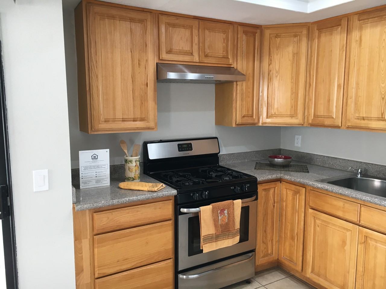 Please call to preview apartment 424-777-3610 Application fee $25.00 Beautiful, airy upper level unit with new finishes throughout! Featuring two generous sized bedrooms and a large open layout living area, you'll love living in this quiet building. The refreshed kitchen features recessed lighting, stainless steel dual-bowl sink, great oak cabinetry and stainless steel stove and fridge. The master bedroom features two closets - including a large, pretty walk-in closet. The shared bathroom features a glass door walk-in shower with handy bench seating. The upgraded mirrors, lights, vanity and tile touches will make everyone feel pampered. The practical tile throughout makes for easy upkeep. Two assigned parking spaces are included along with a common area laundry room. Please note: **Not pet friendly. **None smoking unit. **We do not participate with section 8. We look forward to speaking with you soon. :^)