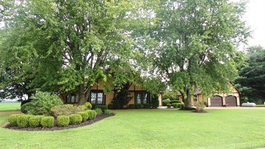 Large home in country. Gorgeous Tudor in the country. Pretty kitchen w/cherry cabinets, high-end kitchen appliances all stay. Lots of wood trim, solid wood doors. Beautiful tiled master BA. Three fireplaces: LR, DR & Bsmt. Vaulted DR w/massive wood beams. Finished walk-out bsmt. Built-in entertainment center that wraps around 2 walls. 4th BR & full BA downstairs. Large utility room. Large detached garage w/permanent stairs leading to large attic, could be finished out. Just minutes from new high school.