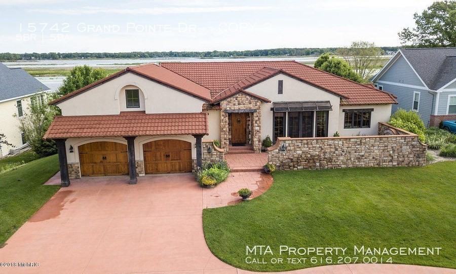 ---- SCHEDULE A SHOWING ONLINE AT: http showmojo com lz 90f8a55089 ---- Executive retreat rental. Available any length of time, short or long term. Ideal rental while your home is being built. Gorgeous & Unique best describes this home w/ 117 ft of Grand River frontage. This home offers 4 BR w/ a private bath in each BR, spacious LR w/ gas log fireplace, cathedral ceilings w/ wood beams, stone accents & french doors to large covered deck w/ ceiling fans. Beautiful gourmet kitchen w/ center island, granite countertops, 2 dishwashers, walk-in pantry & stainless steel appliances. Spacious DR w/ french doors to brick & stone patio. Finished LL w/ FR & 2 of the bedrooms that walk-out to custom patio w/ deluxe gourmet grill/ wet bar that offers built-in grill, brick pizza oven, ice maker & much more. Custom features include ceramic flooring, wood flooring, stone accents, granite countertops, open floor plan, central air, & 2 stall garage. Grand River views from almost every room.