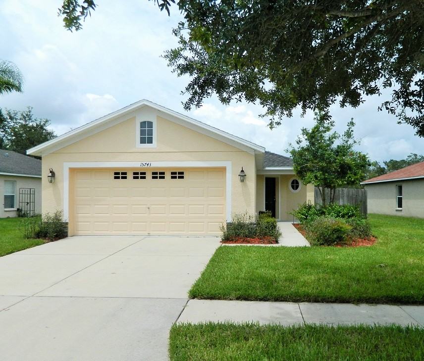 This beautiful 3/2 opens to a spacious living and dining area with large windows allowing plenty of natural light, vaulted ceilings, and plush carpeting. Dining area has chandelier lighting and a pass-through into the kitchen making serving and cleaning up a breeze. Kitchen comes equipped with stainless steel appliances including dishwasher, flat top stove, refrigerator with ice dispenser, and lots of cabinet space. Kitchen has walk out to screened lanai that overlooks the fenced back yard area. Master bedroom is large with a bay window, features a walk-in closet, an in-suite bath with a shower and tub combo. Secondary bedrooms are separated from the master suite and are generously sized and carpeted, as well as share a full bath with a shower and tub combo. Home also has a 2 car garage with automatic garage door opener.