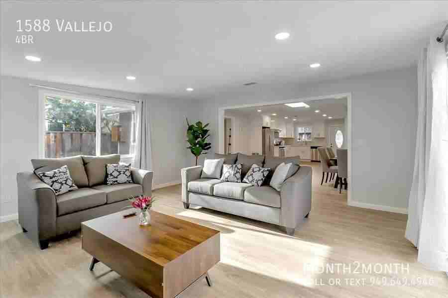 This beautiful 4 bedroom/2 bathroom/1 office home is an absolute gem in the highly-desired Birdland neighborhood of Sunnyvale. It is located on one of the quietest streets, and is walking distance to shopping, transportation, and the new Apple campus/park. This stylish house is approximately 1650 sq. ft. and features two newly remodeled bathrooms, new/resurfaced floors, a brand new fridge and oven in the kitchen, a large eating area, spacious family room with cozy fireplace, and a bonus room/office, which is perfect to work from home. All furniture is brand new and carefully picked by designers. This is a must see home! Actual furnishings/decor may differ due to product changes and enhancements Pricing reflects four (4) months or longer lease term. Shorter lease terms are available starting at thirty days (30), however, the price will be subject to change Due to moderate Bay Area climate, this house (like most in the area) does not have air conditioning