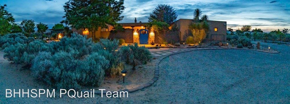 Views - Drive up to the gated compound of this fabulous Corrales home featuring 2 horse stalls and tack room. Room for RV parking, and awesome views through out. Enter the huge court yard that boasts fountain, mature landscaping and covered patio. walk through the front door to an open floor plan, dinning area, kitchen with all updated stainless Steel appliances , Granite counter tops. Opening up into a fabulous Portal w/ water fall & fire place. Spectacular views of the sunset and the mountains. Off the Kitchen Super Duper laundry room with storage. 2nd/3rd bedroom can be used as an additional living space or an office w/ private bathroom. Oh and a huge master bedroom with views as well, and so much more!! You have to see this home!