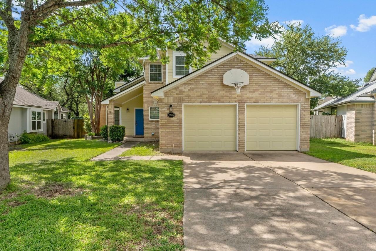 Live in the heart of highly sought-after Brushy Creek—an award-winning community known for its exceptional parks, trails, pools, sport courts, fitness programs, and top-rated Round Rock ISD schools: Great Oaks Elementary, Cedar Valley Middle, and Round Rock High. This warm and welcoming home features vaulted ceilings, rich hardwood floors, a striking brick fireplace, and an updated kitchen with bold green cabinetry, black appliances, and retro-inspired checkered flooring. Fresh carpet was just installed upstairs, and the spacious layout includes a loft, large bedrooms, and a generous primary suite with dual vanities, a walk-in shower, and a roomy closet. Step outside to enjoy a big backyard with mature trees, built-in stone BBQ area, and a freestanding finished office with power and A/C—perfect for remote work or creative projects. The home also includes a water softener and whole house filtration system for added comfort and peace of mind. Refrigerator, washer, and dryer included. This is more than just a home—it’s a lifestyle in one of the best communities around.
