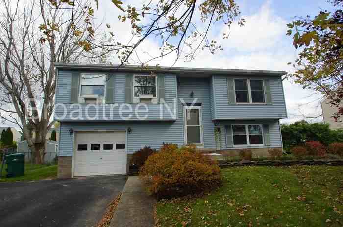 This 3 bedroom Farmington home has charm! The kitchen dining area has beautiful hickory cabinets and oak hardwood floors. From the dining area walk out on to the 14x16 custom 2 story deck. The lower level features a spacious custom finished family room with Vermont gas stove. Very inviting! Extra storage in the lower level, large bathroom/laundry room, and attached garage. Back yard features an Amish built shed. Updated throughout, new sliding glass door, fresh paint, nice landscaping, great neighborhood, convenient to Thruway. Rent from a professional with Broadtree Home Rentals. Visit www.BroadtreeHomes.com for more information on this or other properties we have available. This property allows self guided viewing without an appointment. Contact for details.