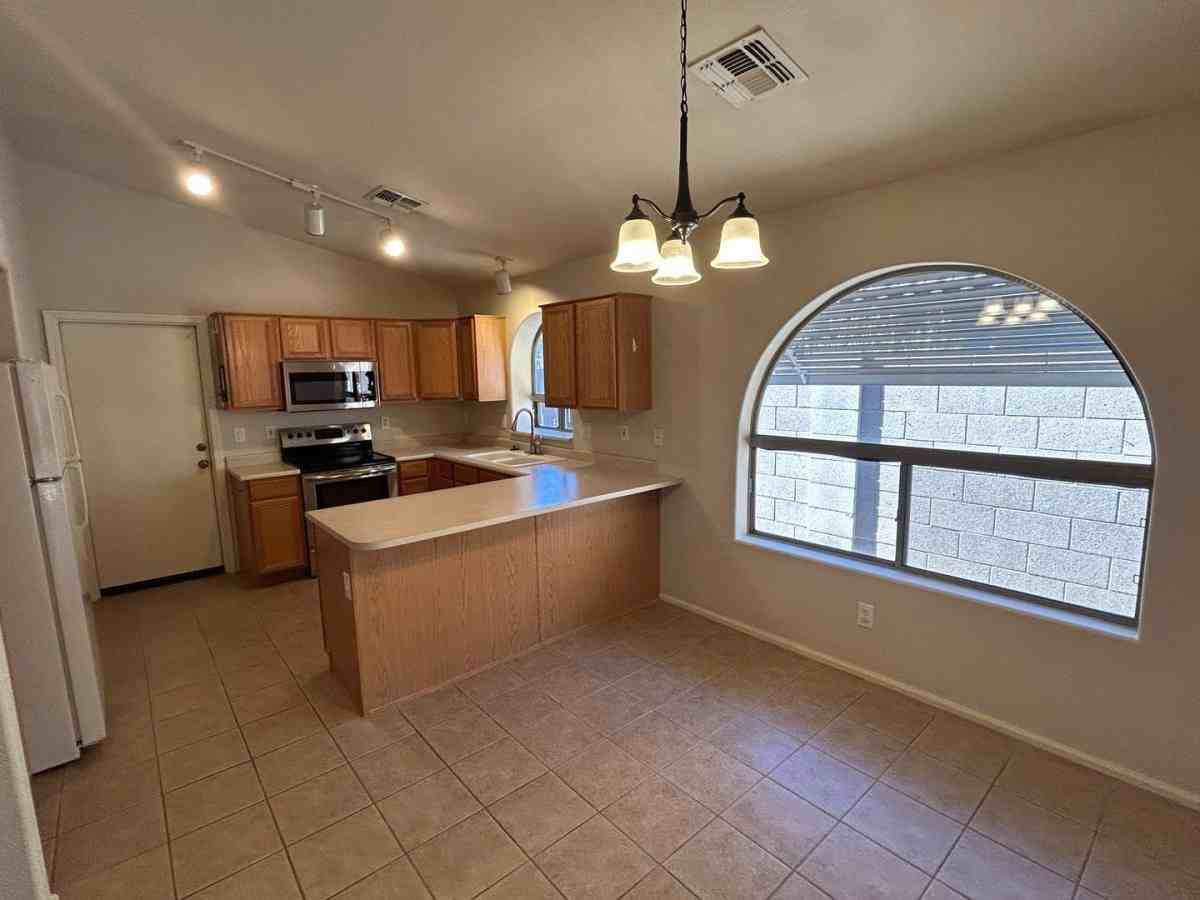 This beautiful three bedroom, two bathroom home with a private pool is located in the highly sought-after Canyon Trails neighborhood and is ready for immediate move-in. Designed with a spacious great room concept, the home features wood and tile flooring throughout, creating a clean and cohesive feel. The kitchen is equipped with stainless steel appliances, oak cabinets and includes a refrigerator, making it both functional and inviting. The split floor plan offers added privacy, with a generous primary suite that includes a walk-in closet and a well-appointed bathroom featuring dual sinks, a walk-in shower and a separate soaking tub. Additional highlights include 2-inch wood blinds, ceiling fans and a washer and dryer included for convenience. Step outside to enjoy the Pebble Tec pool, perfectly positioned with desirable north/south exposure. This home combines comfort, style and location, making it an excellent rental opportunity in a high-demand area. 12 month minimum lease. Pets ok with approval and an additional deposit but no cats please. The security deposit is equal to one months rent. The application fee is $55 per adult. Initial MOVE-IN Costs: Security Deposit - Minimum of 1X monthly rent but not greater than 1.5X monthly rent. First Month's Rent + $65 Resident Services Package Setup Fee. Pets - If applicable, a non-refundable Pet Fee in the amount of $300 per pet is required. Recurring Monthly Costs: Monthly Rent. $50/$65 Resident Services Package (includes renters' insurance, credit reporting, rewards program, pest control, air filter delivery and more). Pets - If applicable, $35 pet rent for first animal and $25 for each additional animal. Additional Disclosures: For most properties, PPG Property Management Does Not inspect the condition of provided washers, dryers or refrigerators. They are provided in as is condition and are fully the tenant's responsibility. PPG Property Management Llc is an Arizona Limited Liability Company. PPG Property Management does business in accordance with the Fair Housing Act. PPG Property Management does not discriminate against anyone based on race, color, religion, sex, handicap, familial status or national origin. PPG Property Management is not responsible for any error or omission in the wording or content of this information. The information contained in this ad is accurate to the best of our knowledge. PPG Property Management. 15411 W Waddell Rd, Suite 106, Surprise, Arizona, 85379. (602) 374-2302. Small Dogs Allowed, Large Dogs Allowed, Fenced Yard, Pool, Dishwasher, Washer, Dryer, Freezer, Garbage Disposal, Microwave, Range Oven, Refrigerator, Ceiling Fan, Double Pane Windows, Large Closets, Patio, Storage Space, Vaulted Ceiling, Window Coverings, Dining Room, Family Room, Laundry Room, Master Bath, Pantry, Walk In Closet, Laminate, Tile, Forced Air & Central. Provided by rentalsource com