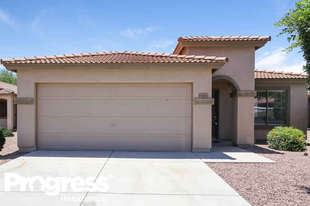 This home features Progress Home Connect - Progress Residential’s smart home app, which allows you to control the home securely from any of your devices This home is priced to rent and won't be around for long. Apply now, while we make this home ready for you, or call to arrange a meeting with your local Progress Residential leasing specialist today. Nestled on Winchcomb Drive, this Spanish-style rental home in Surprise comes with three bedrooms and two bathrooms. The renovated house has stunning gray-hued wood floors in the huge living room. The kitchen is gorgeous with tile floors, black appliances, granite countertops, and eye-catching cherry wood cabinets. When you get to the master bedroom, youre sure to appreciate the wood floors since they make decorating easy. The attached bathroom includes two sinks, a tub, and a toilet in addition to a walk-in closet. The homes two-car garage offers plenty of storage space. The massive walled-in backyard offers privacy and comes with a covered patio. Schedule a tour of this cozy home today. Note: The listed amenities may not be accurate. Please consult with a Progress Residential leasing agent to confirm the property will meet your individual needs.