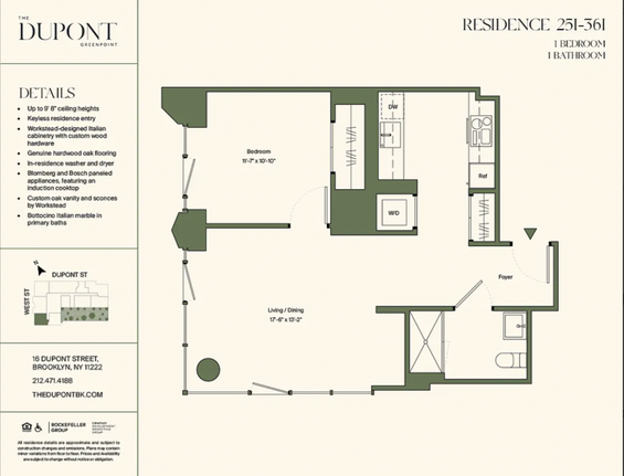 1-bedroom apartments at 16 Dupont St #31I cost about 21% more than the average rent price for 1-bedroom apartments in New York.