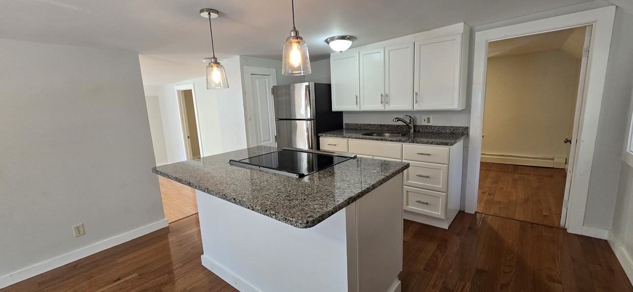 Renovated large two bedroom on 2nd floor of an antique colonial in Pepperell Center, with a brand new kitchen and new tile bathroom. New kitchen features white shaker style cabinets, dovetail soft-close doors, granite countertops, new stainless steel appliances and kitchen island with seating and open to the dining area/den. Unit also features hardwood floors throughout, extra storage and laundry on the 1st floor. No smoking or pets allowed. Across the street from the Nashua River Rail Trail. A 12.5-mile paved mixed-use rail trail which starts in Ayer and ends in Hollis NH. Enjoy Pepperell with it summer band concerts at the Pepperell Town Field or stop by the Farmers Market every Saturday at the Pepperell Town field. Easy commute to Route 3. 10 minutes to the New Hampshire. Contact me for a Quick Video tour. Tenant pays heat, hot water and electricity. Property now vacant and easy to show.