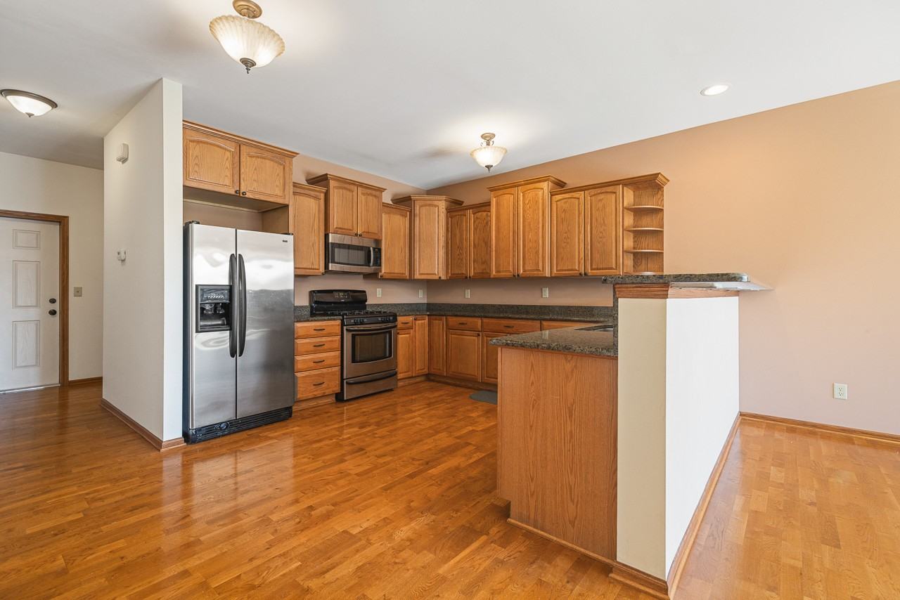 MUST SEE! Wonderful upscale just under 2,000 sq ft, 2-Bedroom, 2.5-Bath, 2-car, 2-story condo with river and park views in charming downtown Rockton. This condo shows off granite countertops and top end cabinets with tons of storage in the spacious kitchen. Refrigerator, microwave, stove and dishwasher included in the unit. The main level has an open floor plan with 9' ceilings. The balcony off the living area spans across the width of the unit with views of the park and river. Large laundry room with storage and a separate ½ bath also located on main floor. Moving to the 2nd level you are greeted with vaulted ceiling bedrooms and huge walk-in closets. Main suite overlooks river and boasts an ensuite bathroom with a double sink vanity, and separate shower and toilet area. Just outside on the landing there is a linen closet and the 2nd full bath that is also equipped with a long double sink vanity. In the highly sought after Rockton School District #140 right in charming downtown Rockton. In just a short walk you can enjoy walking trails, public pool, library, and Rockton parks with basketball, tennis courts, and baseball diamond. Or even take a stroll down the main street and visit the shops or grab a meal or cold drink at many of the downtown restaurants or bars. Pets welcome * 2 car garage Garbage is included in rent 1 year lease, subject to income verification and background check. *Pet approval, deposit and fee required. (Pictures are an example of a unit in the condominium group- may not be of this exact unit)