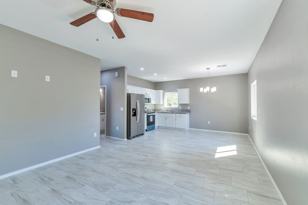 Located in Tucson, this property features modern living with tile flooring and a full-size washer and dryer for convenience. It is positioned near a highly-rated elementary school, providing educational options within walking distance. Additionally, the area is pet-friendly, with numerous grooming services, supply stores, and veterinary hospitals nearby, enhancing its appeal to pet owners.
