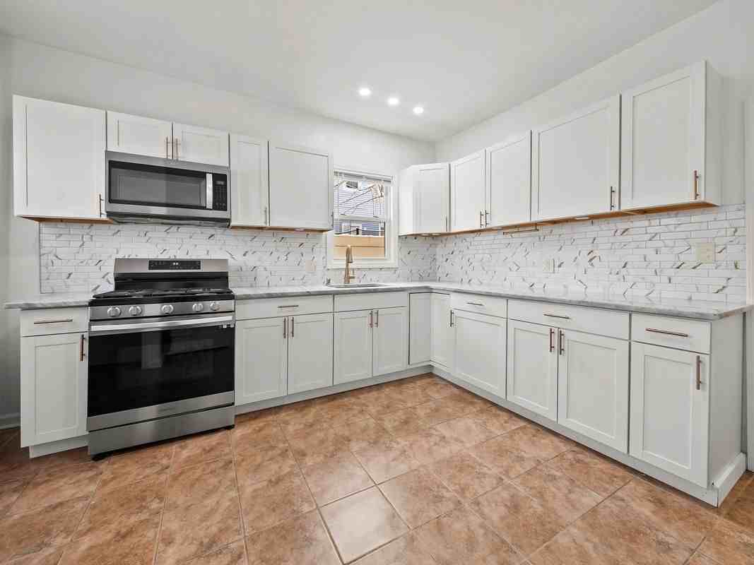 Spacious renovated first-floor apartment featuring 3 bedrooms, a large living room, hardwood floors throughout, and excellent natural light. Updated full bathroom and a beautiful modern kitchen with white cabinetry, stone countertops, stainless steel appliances, and a separate pantry for extra storage. Additional highlights include a coat closet, ceiling fans, and a private backyard exclusive to the first-floor unit — a rare bonus. Well-maintained property in a convenient location. First-floor living with private outdoor space — schedule your tour today.