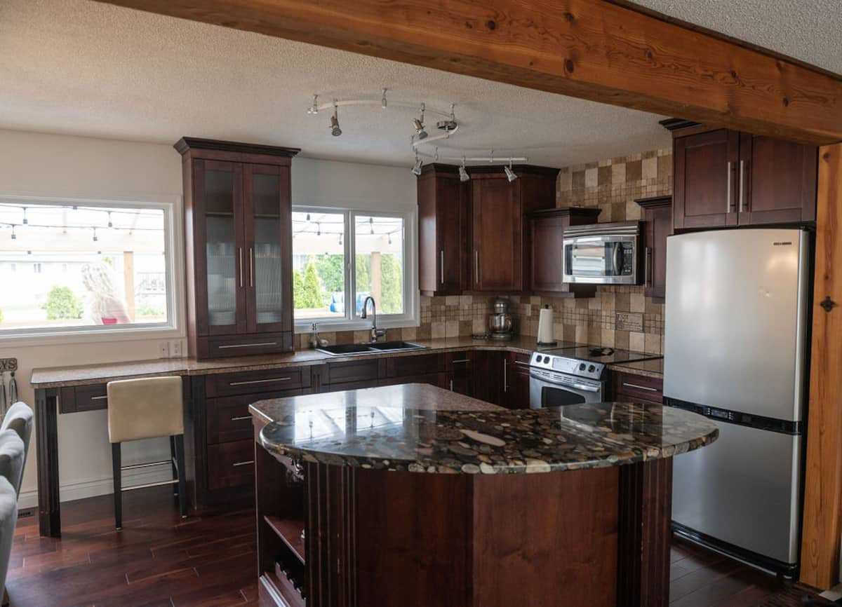 Rare opportunity to rent a fully-furnished home with two suites in central Kelowna, located off Bernard Avenue near Parkinson Rec Centre, the Apple Bowl, and minutes away from downtown. Perfect for people who are relocating to Kelowna with the intention to buy or need a temporary space on a short-term work contract. Availabe for rent starting in October until April 30th, 2022. Shorter terms will be considered for higher rent amounts. Located on the main level is an open-style living room, dining room, and large kitchen. The kitchen offers a large island with a built-in wine rack, all the modern appliances, and a separate nook for breakfast or work space overlooking the backyard. The living room is furnished with new furniture in a bright and friendly space. The bedrooms are split equally between the two levels, two bedrooms upstairs, and two downstairs. Downstairs has its own smaller L-shaped kitchen with fridge, dishwasher, and range. It also has a separate sitting area to relax in. A laundry area with a new washing machine and dryer are also downstairs. The back area has a patio sitting area, and a raised deck area to enjoy the sunrise and afternoon sun. There is a pool in the backyard, but it will be closed from October-May. Out front is plenty of parking for multiple vehicles. Home is located in a quiet neighbourhood as well. The home is not pet-friendly and is smoke-free. Rent will include water/sewer utility bill and WiFi, but not electricity or gas, which tenants can setup under their own account. Managed by a licensed property manager with Highpoint Realty for the landlord. Contact office for viewings. James McCullough Associate Broker Highpoint Realty www kelownapm com