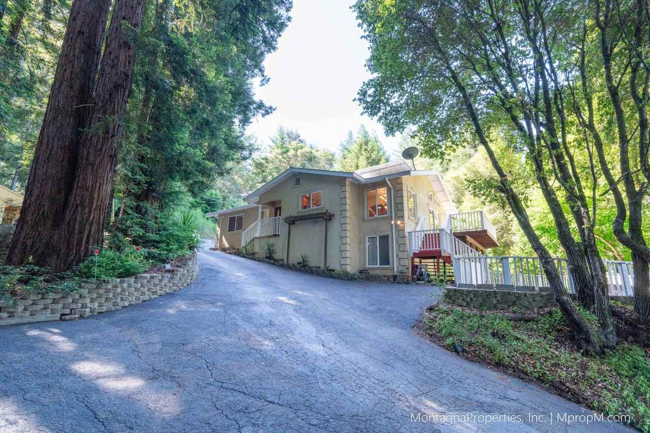 Beautiful updated and spacious home on over 3.6 acres! Great LG Mountain Location off of Summit and Soquel San Jose Rd. Highly rated Los Gatos Schools! Central heating and Air Conditioning. Spacious kitchen with cherry and maple wood cabinets, granite countertops recessed lighting and custom backsplash. Appliances include: stainless fridge with water and ice dispenser, dishwasher, flat top electric stove, hood exhaust fan, oven, microwave, wine fridge and trash compactor. Large laundry room with washer and dryer, abundant cabinet and counter space and laundry sink. Dining area off of kitchen. Large living room with tall open beam wood ceilings, 3 glass sliders looking out onto the tree tops, wood LVP flooring and ceiling fan. Living room and primary bedroom open onto a sunny wrap around deck with forest views. Hall bathroom has large skylight, shower over tub, double sink vanity, exhaust fan and extra storage cabinet. Spacious master suite with tall ceilings, ceiling fan and sliding glass door leading out to deck area. Primary bathroom has soaking tub, separate stand-up shower and walk-in closet. Newly installed carpets in all 3 bedrooms. Property has solar panels and is tied into PG&E electric. Under the house is extra storage space in the spacious basement with plenty of room for a workshop or craft space. Additional storage shed available at the top of the driveway. Easy circular driveway wraps around the house and has plenty of parking pads. No need to turn your car around as you can come in one way and exit the other way. Wonderful Santa Cruz Mountain community. Comcast is available for high-speed internet. House has propane through Ferrellgas, community well system feeds property with plenty of water, house is on septic. On demand tankless water heater. Summit store is just a few miles down the road. Downtown Los Gatos is about a 25 minute drive depending on traffic and Santa Cruz is close by too. Enjoy this private and serene home nestled in the redwoods!