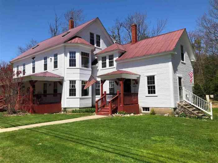 Remarks - Public1920 Classic Colonial serving as a 6 unit residence. Charming vintage features include matchstick hardwood oak flooring, high ceilings, bay windows,Bulls eye woodwork, mission style solid wood doors, turned rail staircase, built in kitchen china hutch. Inviting farmers porch. Third floor \'pent house\' owners quarter soffers stainless steel appliances, modern kitchen and bath plus large sun/grilling deck and living room with cozy wood stove. 1.8 acre lot once home to the old Tamworth fire station hosts a bubbling brook and fire pond. The old fire station is on site complete with fire tower for drying old canvas style fire hoses. Currently used as a separate commercial/storage rental building. Property is in very close proximity to Tamworth village, home to the historic Barnstormers Summer Theater, the village country store and library. The Swift River is across the street and flows into the village. . Good central location to the White Mountains and North Conway. Rental units consist of 6 Apartments each 1 Bedroom. Units 2 & 4 $750 PM, Unit 3, $625, Barn, $600, Penthouse on Third Floor $1200. Provided by Listanza ID 33140961