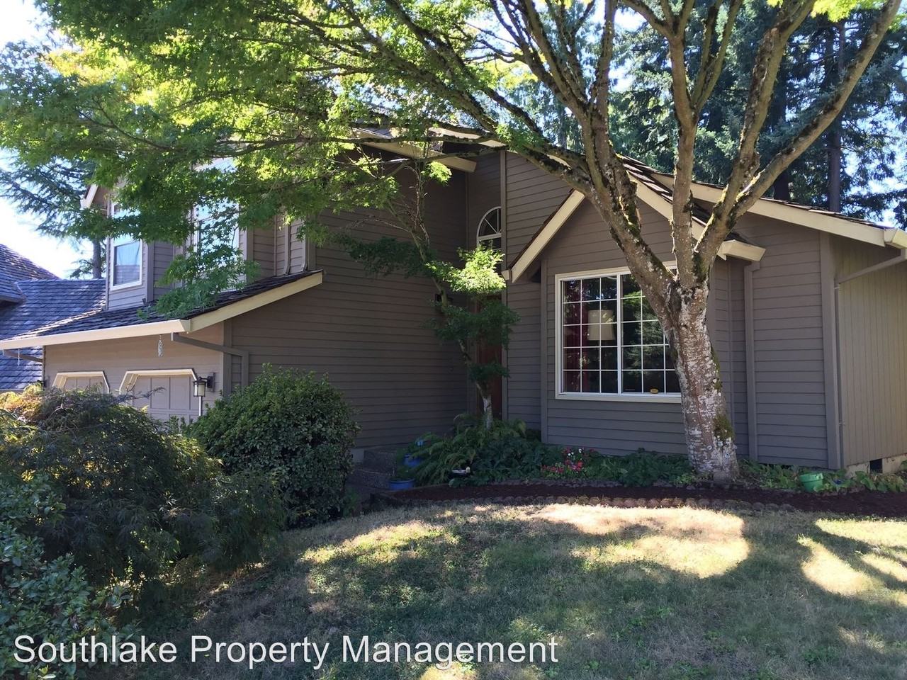 Cul-de-sac close to Cook park! - Tucked away on a cul-de-sac and backed up to green space, this home has it all! The completely remodeled kitchen is the heart of this home. Granite counter tops, a large island, loads of cabinet space, and stainless appliances make this kitchen a dream. The great room with gas fireplace, wood floors, and dining area is open to the kitchen. The entire back of the house looks out large windows and french doors to the three level deck and completely private green space beyond the back yard. By the front entry you have access to a study as well as a desk and family communication center. Downstairs, there is a large family room with a wood burning fireplace, half bath, and laundry room. Upstairs, you will find a master suite and two guest rooms as well as a second bathroom. Upstairs has been updated with new paint and carpet. Walking distance to Cook Park and Tigard High School. Don't miss out on this fantastic home! No Cats Allowed