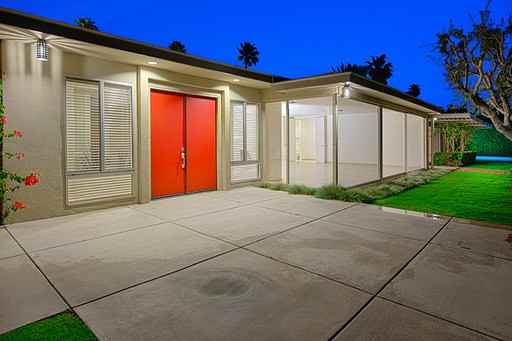 There's no place like home! Palm Springs mini-estate with attached two car garage. Former home of Hollywood legend Mervyn LeRoy, producer of the timeless classic, The Wizard of Oz. This home was built in 1956 and is a timeless classic itself; mid-century modern and absolutely stunning, both inside and out! Luxurious living space with walls of glass open to the gardens, fireplace, outdoor showers plus office/gym. The kitchen boasts a cooking island and built in ovens, dishwasher and a large refrigerator with ice-maker. The large master suite on the east side of the home has a restful sitting and dressing area, and master bath with both a stall shower and tub. Nicely separated, the other bedrooms and baths are on the west side of the property. All tile floors, except in the bedrooms, which have large area rugs. For convenience, the laundry room, complete with washer & dryer, is located next to the kitchen. Pool and gardening services, water and trash are included in the rent. Small pet will be considered on a case by case basis.